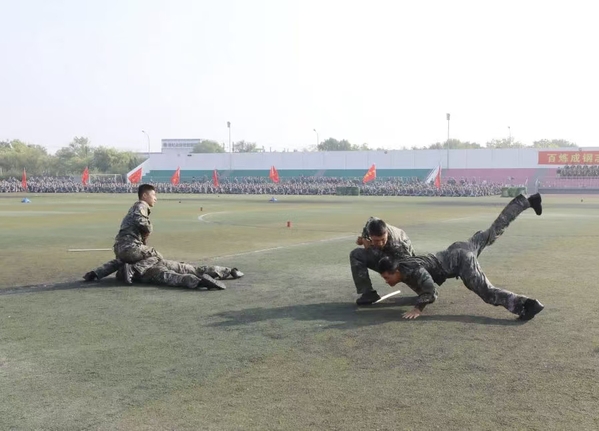 步履铿锵壮歌行,呼声震天破长空。在军事技能展示环节,学生军训团成员与承训部队教官英姿焕发、势如雷霆,匕首操的凌厉、应急棍的刚劲、战术表演的逼真和格斗环节的震撼,充分展现了天外学子的过硬作风和中国军人的赤胆豪情,赢得了现场观众阵阵掌声。