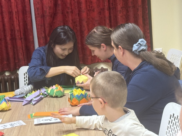 公派教师刘芳演示了中国茶道。从温具、置茶到冲泡、奉茶,她都优雅展示;从茶叶种类、特点到品鉴常识、中国茶文化精神,她均详加解释。志愿者教师庞泓雪鼎力协助,不辞辛苦。参与者们观赏、品茗,在袅袅茶香中体会了东方哲学的宁静与平和。