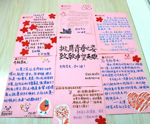 同学们以信件的方式为齐际加油鼓劲(央广网发 天津师范大学供图)