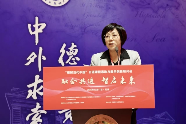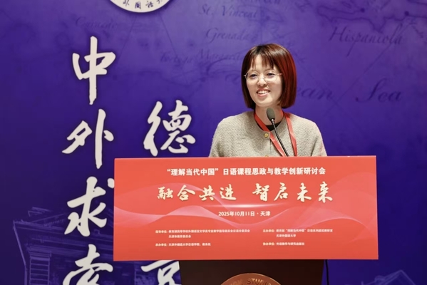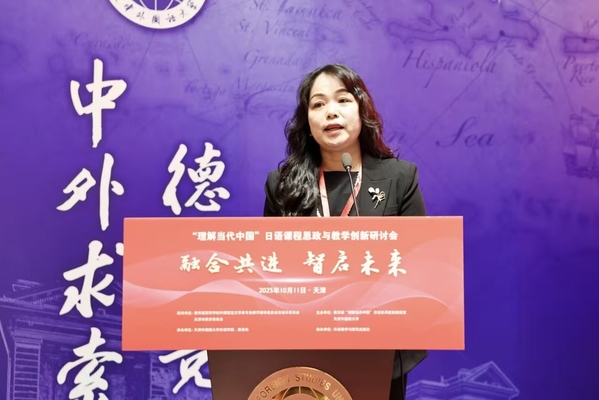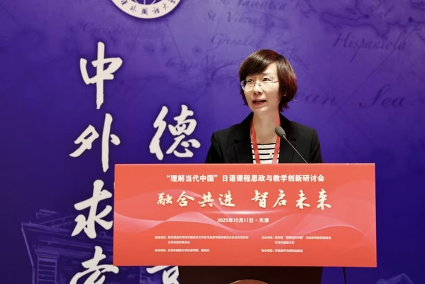 李迎迎向莅临研讨会的各位专家学者、教育同仁表示欢迎。她指出,本次研讨会以《理解当代中国》日语系列教材为依托,聚焦“课程思政与日语教学的深度融合”这一关键议题,旨在通过深入的理论研讨、生动的教学展示和坦诚的实践交流,共同探索如何将价值塑造、知识传授和能力培养融为一体,如何在外语教学中有效引导学生深刻理解当代中国的发展道路、制度优势和文化精髓,从而探索出一条外语教育更好服务国家国际传播能力建设的新路径。