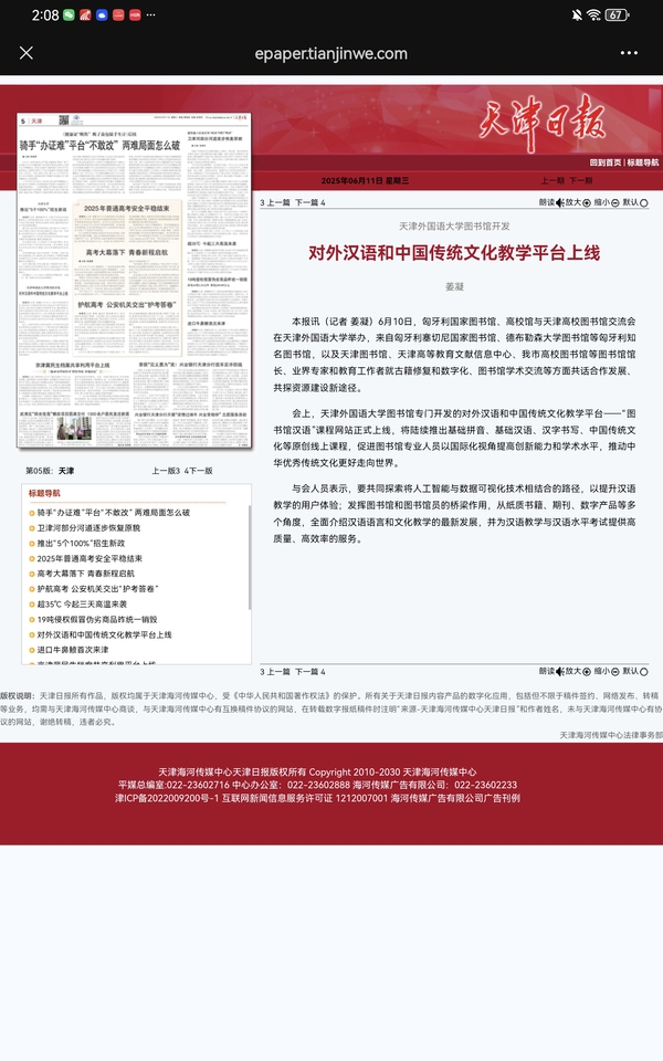 第十六届新领军者年会(夏季达沃斯论坛)将于6月24日至26日在天津举行。开云手机平台_开云(中国)派出188名师生志愿者参与本届夏季达沃斯论坛,他们将以丰富的翻译经验与技能、较强的跨文化能力和暖心的志愿服务,向世界展现天津青年的良好形象。 开云手机平台_开云(中国)英语学院翻译系主任李云靖刚上完上午的课,便通过电脑收发整理往来邮件,中午还要赶往国家会展中心(天津)参与本届夏季达沃斯论坛筹备工作。最近半年来,他这样“学校会场两头跑”已是常态,有时遇到一些临时紧急的翻译任务,还会忙到深夜。 李云靖是一名参与过多次国际会议志愿服务的“老兵”,第十四届夏季达沃斯论坛、第十五届夏季达沃斯论坛、世界经济论坛2025年年会、2025中国—上海合作组织人工智能合作论坛等,都有他忙碌的身影。 “从会前的多语种资料翻译到会议期间的语言服务,从重要会谈的现场口译到文化活动的多语种讲解,从证件注册到外事接待,变的是工作内容和地点,不变的是天外志愿者的初衷、热情和全身心投入。”李云靖说,随着会期日益临近, (下转第2版) (上接第1版) 他随身携带相关专用词汇表、笔记本等“老战友”,带领学生反复演练口译技巧与文化阐