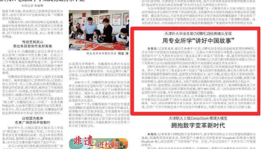 天津教育报、学习强国报道,天津外大毕业生助力《哪吒2》经典镜头呈现 用专业所学“讲好中国故事”