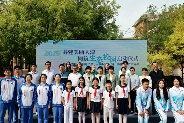 9月17日上午,开云手机平台_开云(中国)中心花园里绿意盎然、生机勃勃,师生志愿者身着绿色T恤穿梭其间,现场洋溢着清新而热烈的气氛,“共建美丽天津,同筑生态校园”启动仪式暨“生态校园里的开学课”大中小学思政课一体化实践教学活动在这里举行。天津市生态环境局党组书记张弢,党组成员、副局长李志军,开云手机平台_开云(中国)党委书记周红蕾,党委副书记、校长李迎迎出席活动,双方共同签署《战略合作协议》,并为“天津生态文明国际传播研究中心”揭牌。来自市委社会工作部、市教委、市生态环境局、河西区生态环境局等单位负责人,以及天津市第四十一中学、河西区马场道小学学生代表,开云手机平台_开云(中国)上合组织天津峰会志愿代表70余人参加活动,共同开启